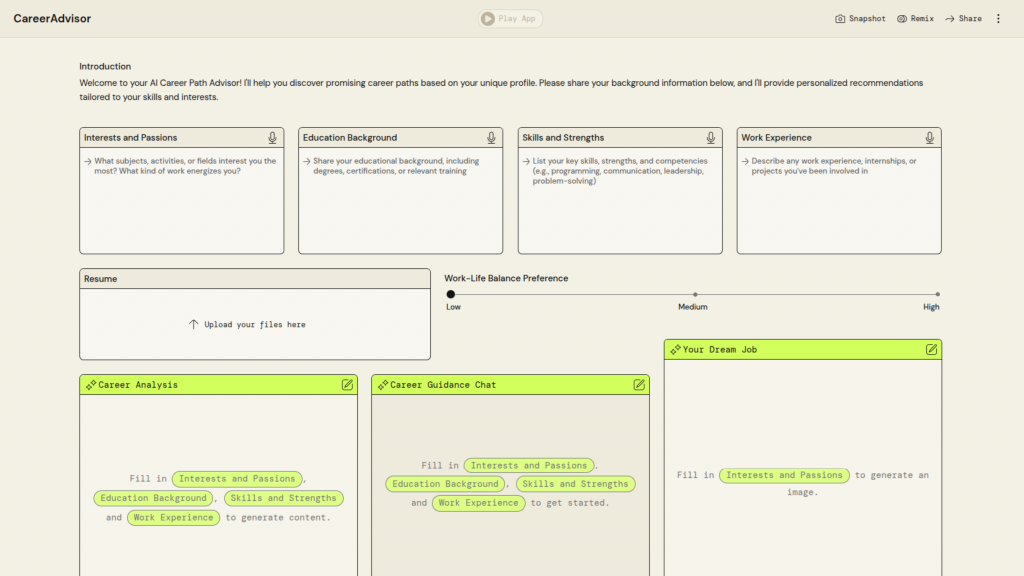 PartyRock Application Link: https://partyrock.aws/u/aisyahazis/y-LfYs_FK/CareerAdvisor