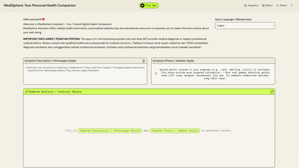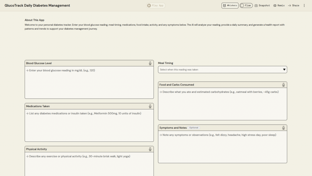 University Name: Universiti Tenaga Nasional (UNITEN) Student Name: Muhammad Rayyan Farhan Bin Zuhardi Category: Digital Health Application Description: Welcome to your personal diabetes tracker. Enter your blood glucose reading, meal timing, medications, food intake, activity, and any symptoms below. The AI will analyze your reading, provide a daily summary, and generate a health report with […]