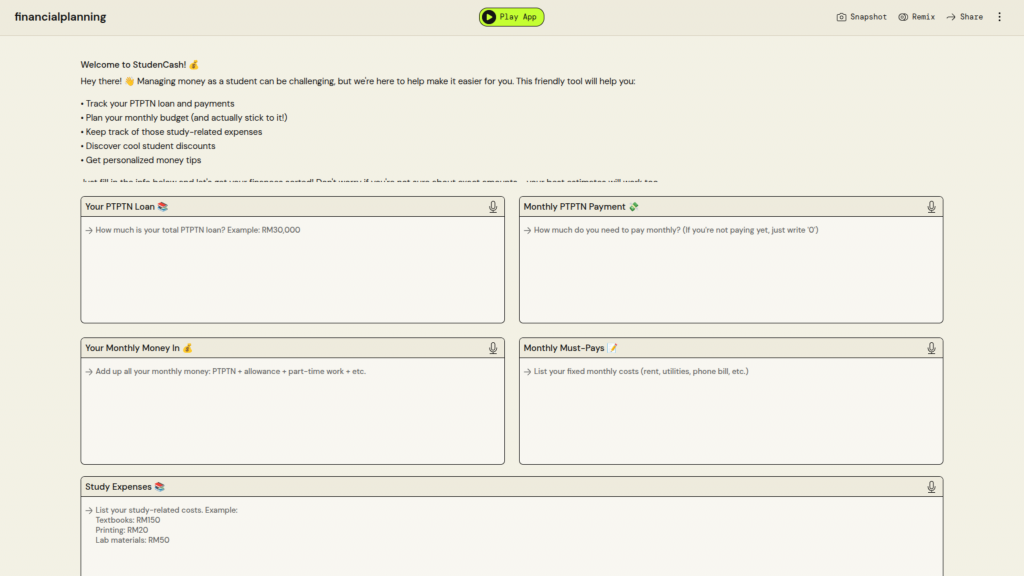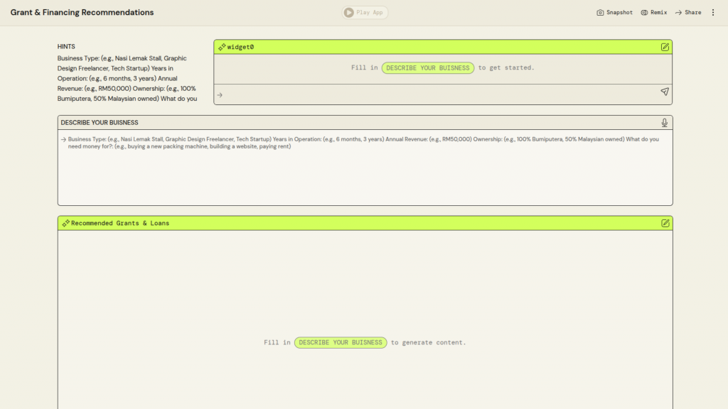University Name: Universiti Tun Hussein Onn Malaysia (UTHM) Student Name: Muhammad Izz Dzikri Bin Mohd Faisal Category: Financial Inclusion & SME Empowerment Application Description: The SME Grant & Loan Navigator is a generative AI consultant built on PartyRock that instantly matches Malaysian micro-enterprises to eligible government financial schemes and drafts professional application letters to accelerate […]